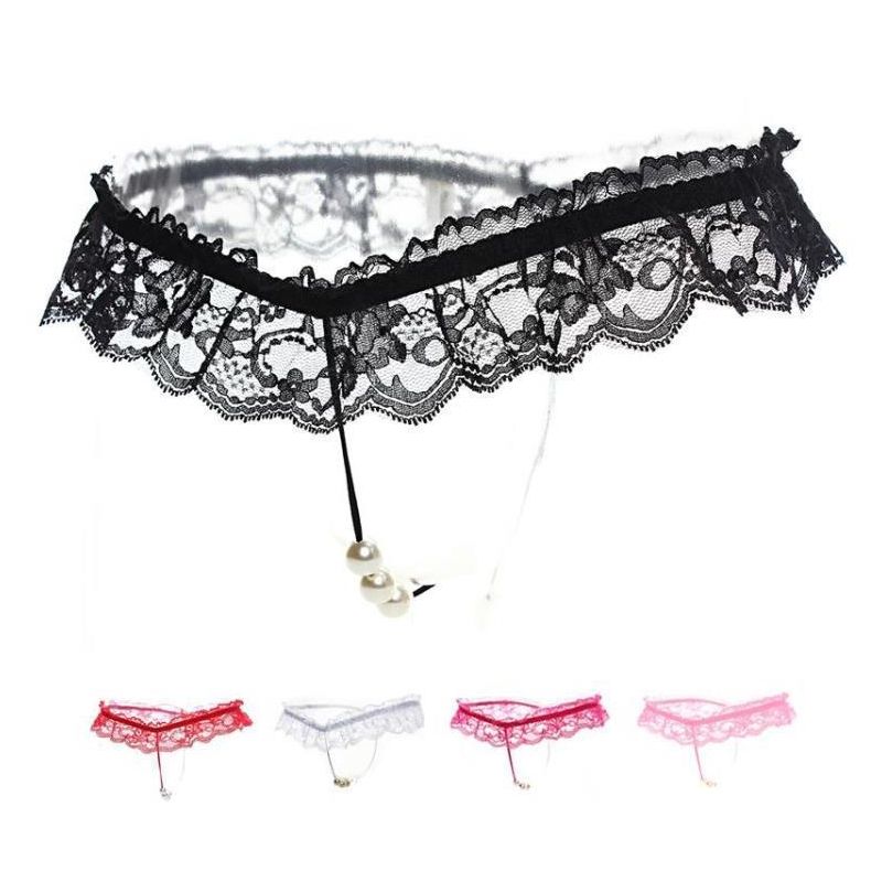 (情趣内衣)激情蕾丝开裆T裤女性低腰透明内裤蕾丝按摩开档性感丁字裤(白色)